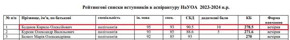 Буданов поступает в аспирантуру ровенского университета по специальности "Политология"