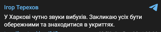 "Оккупанты нанесли по меньшей мере 4 удара по городу Харьков. Экстренные службы выехали на места попадания", - написал Синегубов.