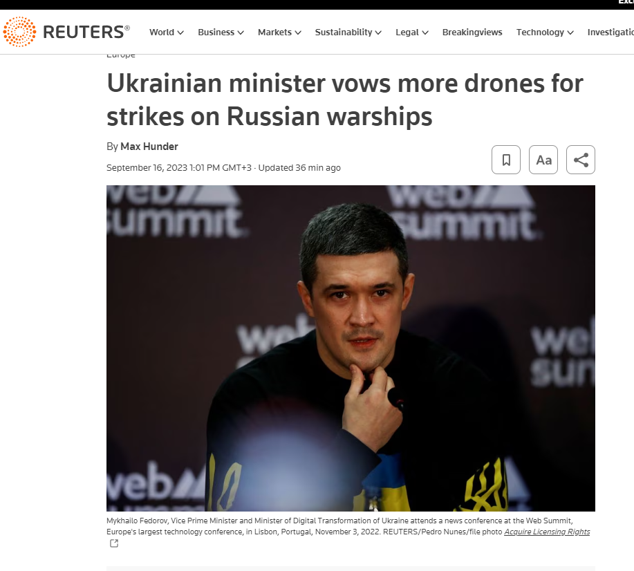 Вице-премьер-министр - министр цифровой трансформации Украины Михаил Федоров заявил, что Украина до конца года увеличит производство дронов приблизительно в 140 раз. Количество ударов по российским кораблям увеличится.