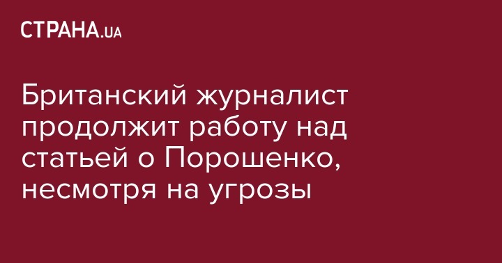 Британский журналист продолжит работу над статьей о Порошенко, несмотря на угрозы