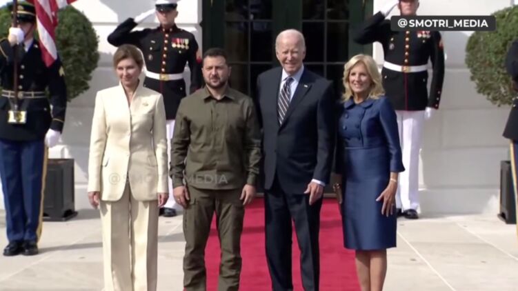 Перед зданием Белого дома Джо Байден вместе со своей супругой Джилл Байден встретил Владимира и Елену Зеленских. После чего они пожали друг другу руки, сделали несколько общих фотографий и направились в президентскую резиденцию.