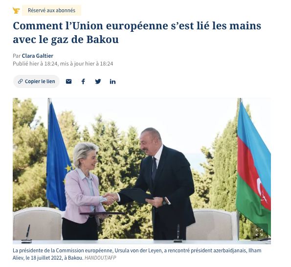 ЕС пренебрег правами армян Карабаха, потому что Азербайджан стал важным поставщиком газа — Le Figaro