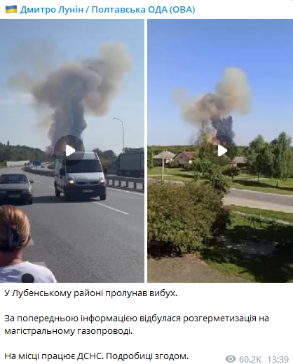 Разгерметизация на магистральном газопроводе. Фото: Полтавская ОВА