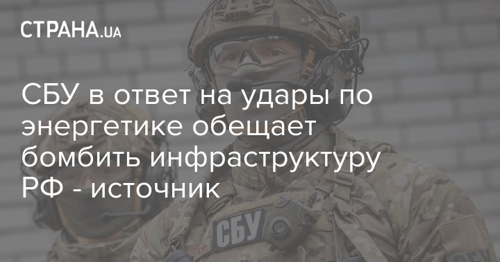 СБУ в ответ на удары по энергетике обещает бомбить инфраструктуру РФ - источник