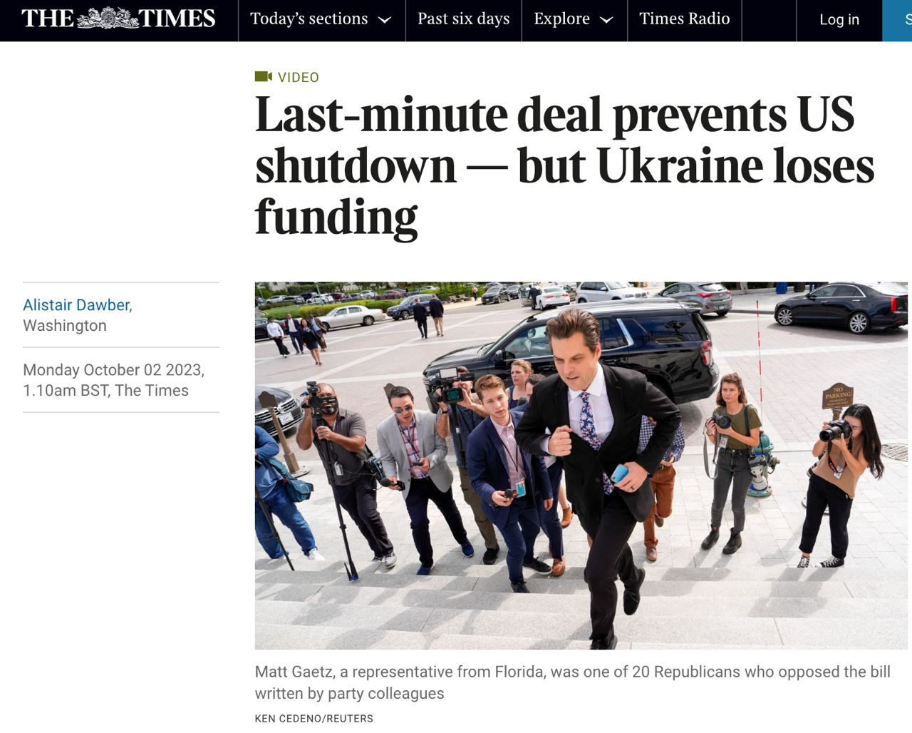 09.30 В Конгрессе становится все сложнее согласовывать выделение помощи Украине, говорится в статье Time по итогам принятия временного закона о бюджете.