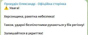 08.50 В Херсонской области угроза ракетного удара.