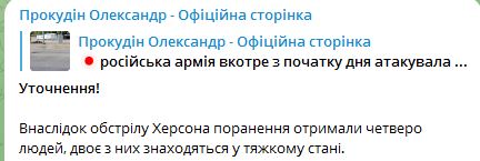 11.05 В Херсонской ОВА уточняют. что в результате утреннего обстрела ранены четверо человек. Двое находятся в тяжелом состоянии.