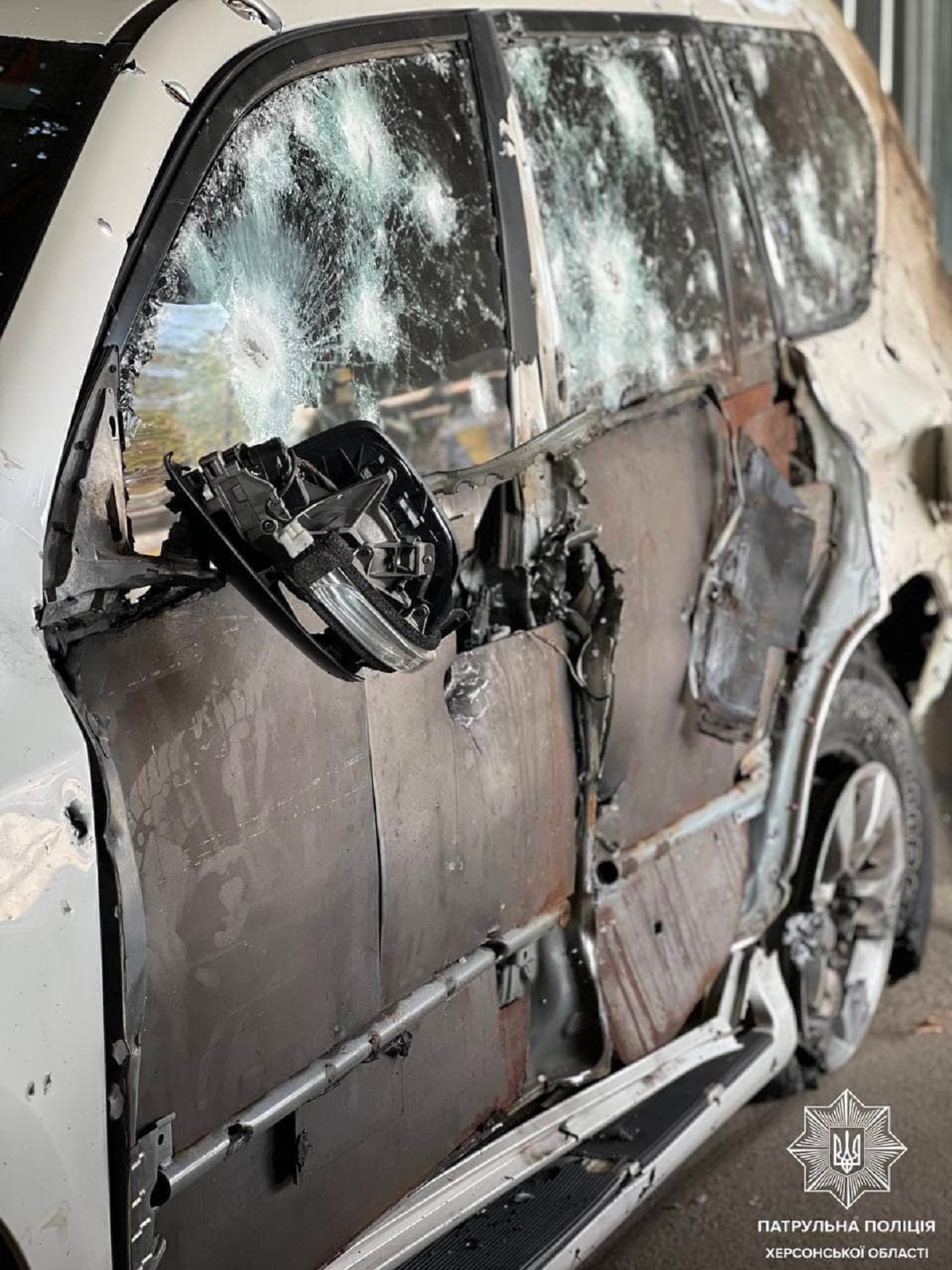 Он публикует фото служебного автомобиля, на котором погибший и его коллега попали под огонь артиллерии.