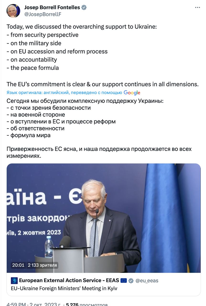 09.45 В Киеве сегодня состоится Совет министров иностранных дел стран ЕС, сообщил глава европейской дипломатии Жозеп Боррель.