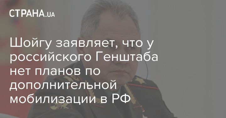 Министр обороны РФ Сергей Шойгу заявил, что у российского Генштаба нет планов по дополнительной мобилизации в РФ.