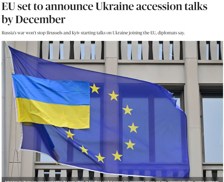 Европейский Союз готовится начать переговоры с Украиной о ее будущем вступлении в блок, официальное объявление ожидается уже в декабре.