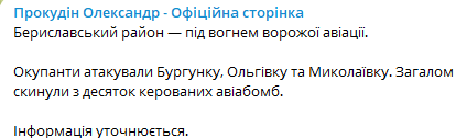 Во время утренней атаки РФ на Херсонскую область сбросили более 10 авиабомб