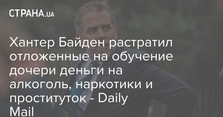 Сын президента США Джо Байдена Хантер потратил 20 тысяч долларов, отложенных на обучение дочери, на алкоголь, наркотики и проституток.