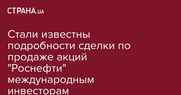 Глава компании Игорь Сечин назвал покупателей "по-настоящему стратегическими инвесторами". По сообщению компании, завершение расчетов по сделке ожидается в середине декабря после выполнения согласованных сторонами условий.