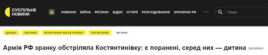 Российские военные утром, 8 октября, нанесли удар ракетой "Искандер" по Константиновке Донецкой области. Среди раненых ребенок.
