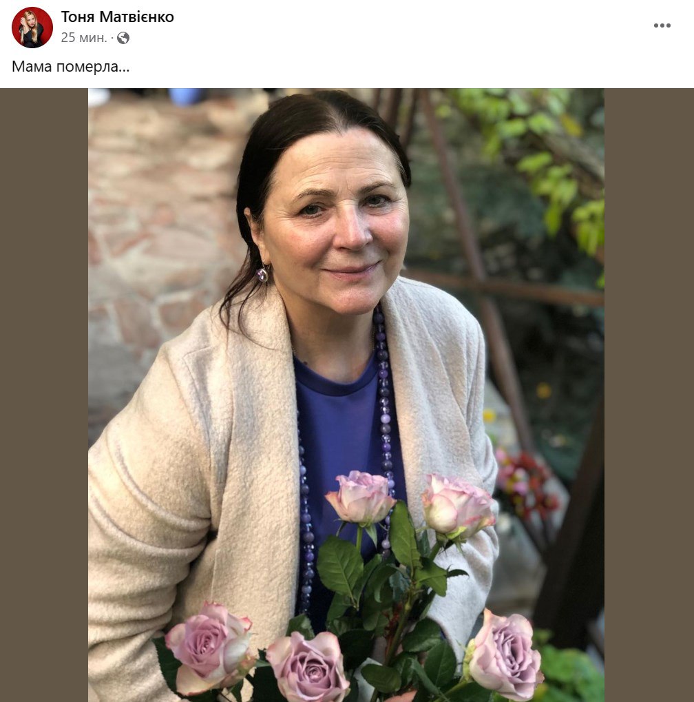 О смерти Нины Матвиенко сообщила ее дочь Антонина в Facebook 8 октября.