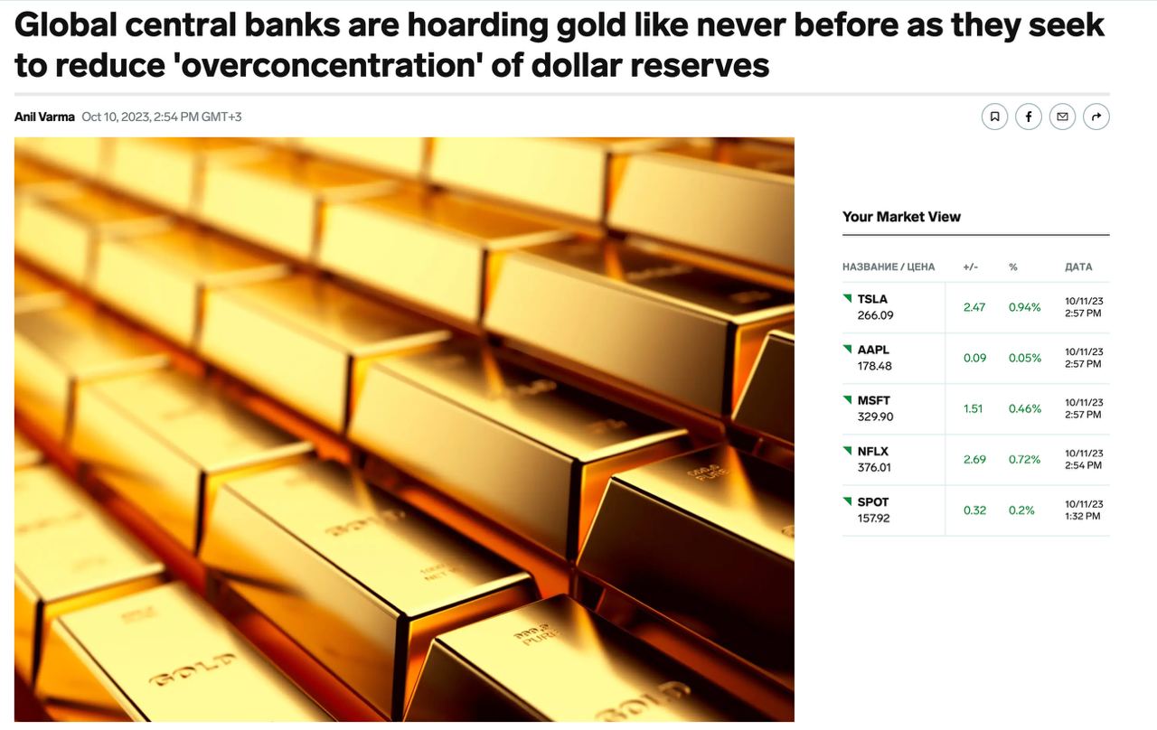 Мировые центральные банки скупают рекордные объемы золота с целью диверсификации своих долларовых резервов.