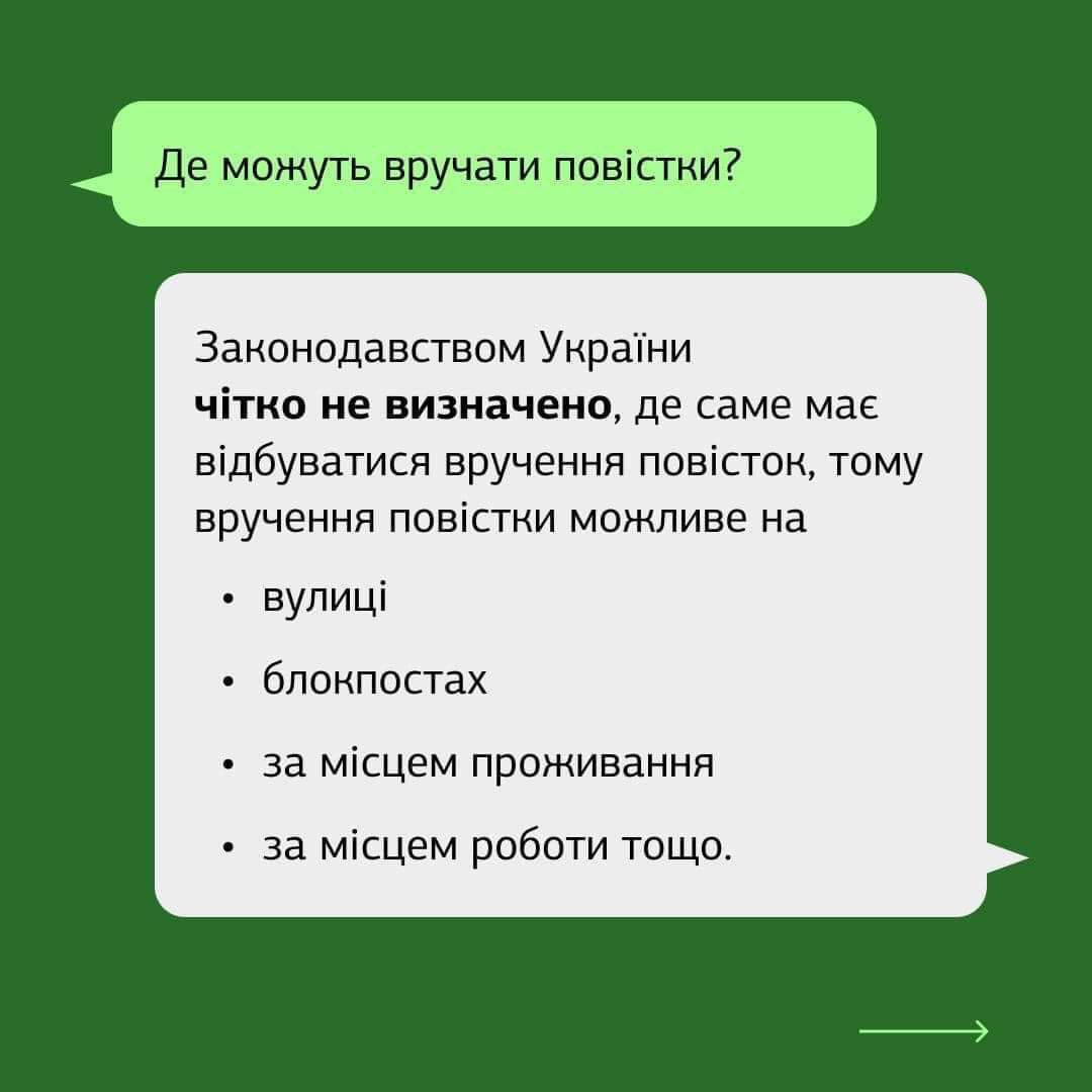 Как сообщал спикер Полтавского областного ТЦК Роман Истомин, нельзя удерживать и избивать людей, которые отказываются брать повестку, нельзя забирать документы, телефон, заходить на частную территорию без полиции и оснований, останавливать транспорт.