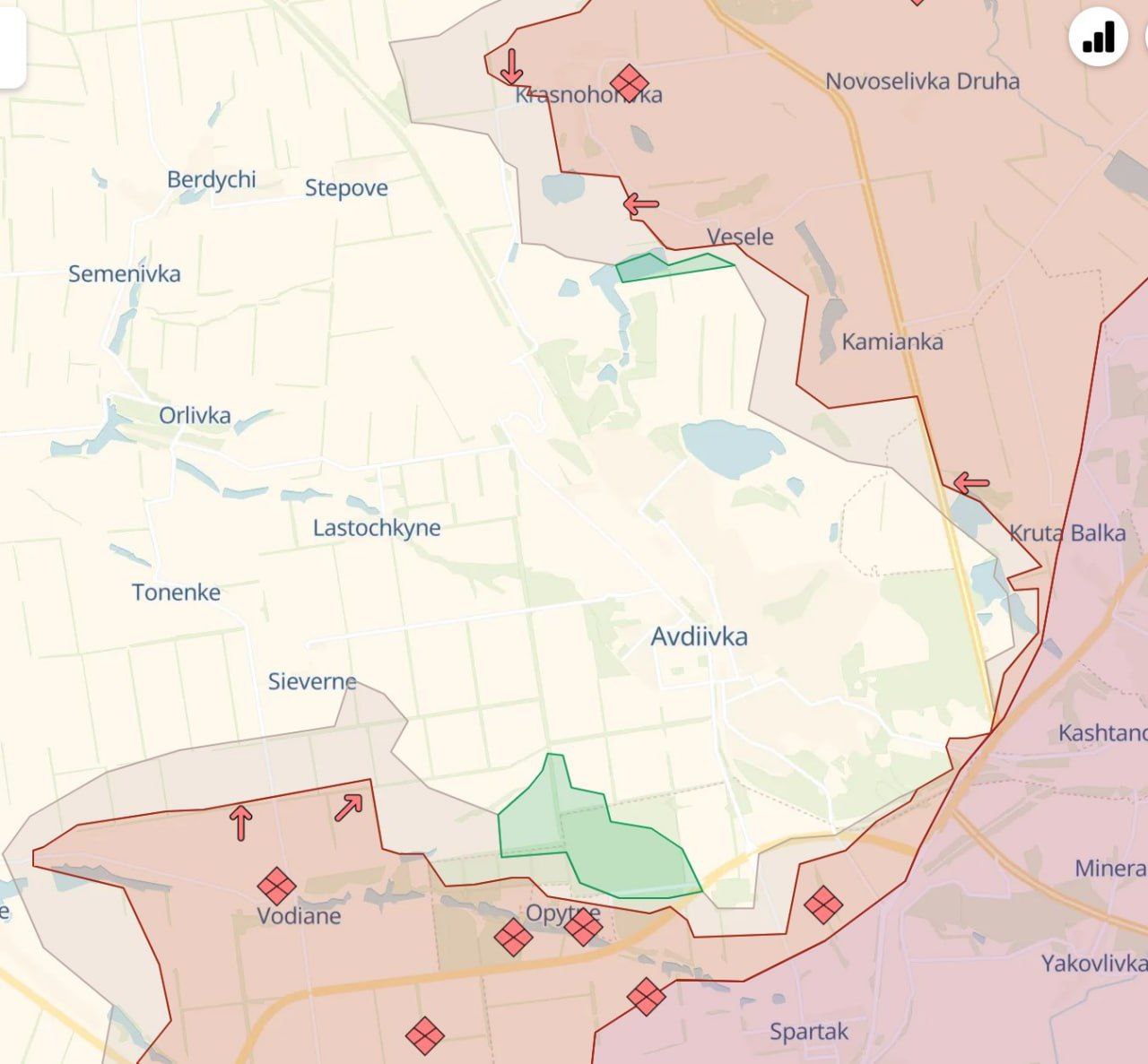При этом российские паблики с ночи утверждают, что террикон, который расположен рядом с промзоной Авдеевского коксохимзавода, уже захвачен россиянами. Заявляется, что бои за эту высоту периодически шли всю войну, поскольку это удобная точка, с которой простреливается северо-запад Авдеевки.