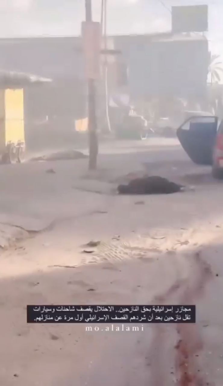 На ролике видны мертвые тела, которые лежат на улице Салах-ад-Дина в Газе, в том числе нескольких маленьких детей. Ранее там двигались колонны с беженцами.