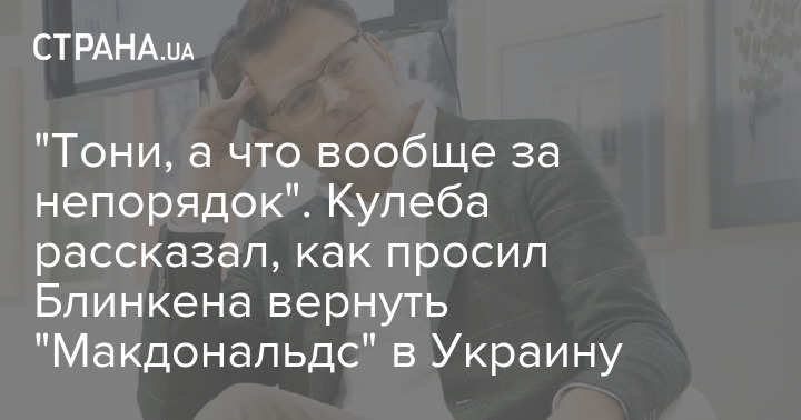 "Я сказал Блинкену: "Верни "Макдональдс" в Украину". Во-первых, это несправедливо, что в России нет "Макдональдса" и в Украине нет. А мы почему должны страдать? Во-вторых, присутствие "Макдональдса" в любой стране - это сигнал инвесторам, что здесь можно работать. Третье. Это рабочие места и тысячи подрядчиков. Я набрал Блинкена по другим вопросам, а в конце говорю: "Тони, а что вообще за непорядок, что это за отношение такое к нам"", - говорит Кулеба.