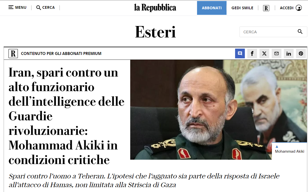 В Тегеране совершено покушение на высокопоставленного офицера разведки Корпуса стражей Исламской революции Мохаммада Акики.