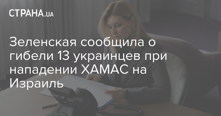 Елена Зеленская подтвердила, что 13 украинцев погибли во время нападения ХАМАС на Израиль. Об этом она сообщила после разговора с женой президента Израиля Михаль Герцог.