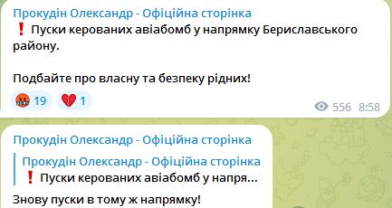 09.00 В Херсонской области сообщают о пуске управляемых авиабомб по Бериславскому району.