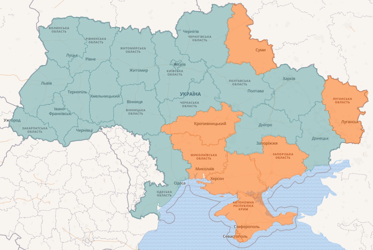 21.20 Воздушная тревога в пяти областях.