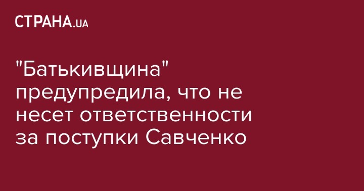 "Народный депутат Надежда Савченко не координирует свои действия с фракцией и партией", - говорится в сообщении.
