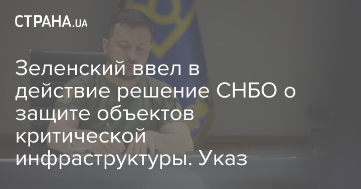 Зеленский ввел в действие решение СНБО о защите объектов критической инфраструктуры. Указ