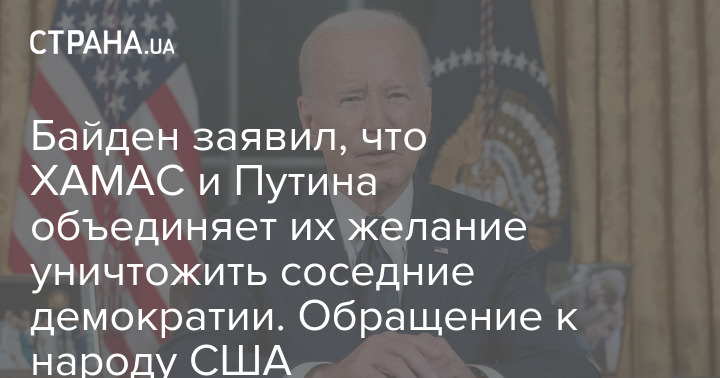 "ХАМАС и Путин представляют собой разного рода угрозы, но их объединяет то, что они хотят полностью уничтожить соседнюю демократию", — сказал Байден.