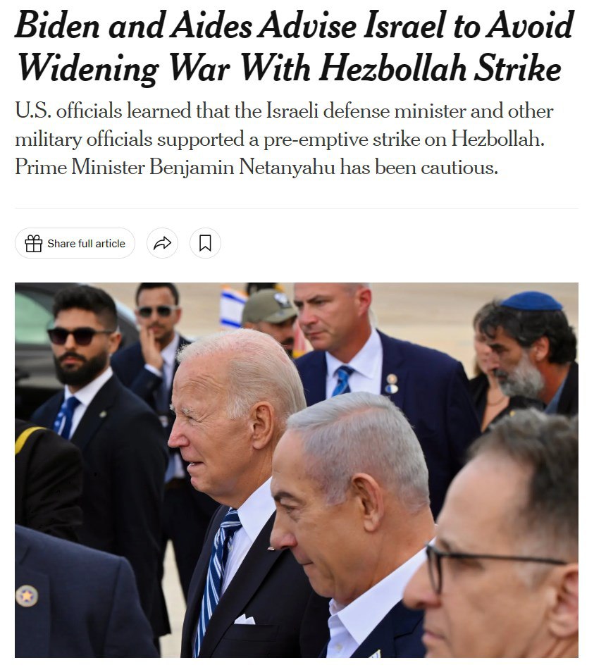 Байден и его помощники призывают Израиль не наносить удары по ливанской "Хезболле" — The New York Times