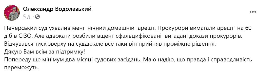 16 октября его отправили под домашний арест, о чём сам военный сообщил у себя в Фейсбуке.