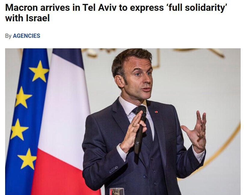 Во вторник, 24 октября, в Тель-Авив с визитом солидарности прибыл президент Франции Эммануэль Макрон. Его самолет утром приземлился в аэропорту.