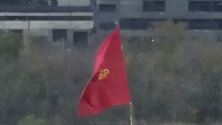 Появилось видео российского и красного бригадного флагов над Авдеевским терриконом, который, как утверждают россияне, там установили военные РФ.