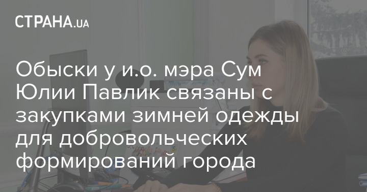 Обыски у исполняющей обязанности мэра Сум Юлии Павлик связаны с закупками зимней одежды для добровольческих формирований города.
