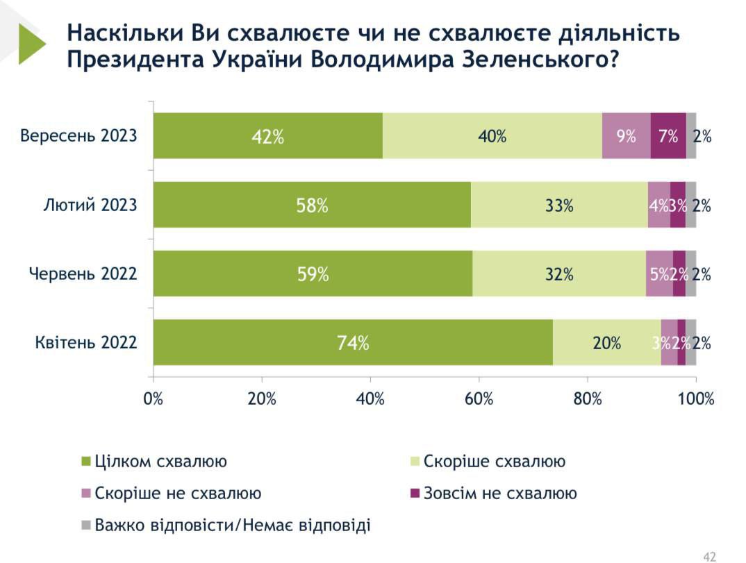 При этом количество тех, кто полностью поддерживает Зеленского, с февраля по сентябрь упало на 16%.