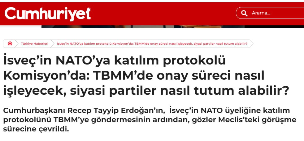 По данным издания, в турецком парламенте признают, что Швеция выполнила все выдвинутые Анкарой требования по борьбе с терроризмом и поставки оружия, но возмущены акциями с сожжением Корана в стране. Поэтому партия власти не склонна "торопить" процесс ратификации протокола о вступлении Швеции в НАТО, говорится в материале.