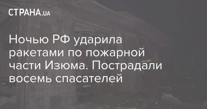 Ночью 27 октября россияне нанесли ракетный удар по зданию пожарной части города Изюм Харьковской области. Пострадали восемь спасателей, четверо из них госпитализированы.