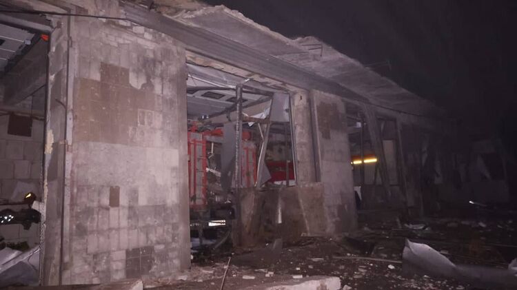 Последствия удара по пожарной части Изюма. Фото: Telegram/Klymenko_MVS