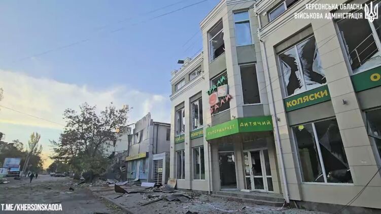 Появилось видео последствий ракетного удара по Херсону, который произошел вчера вечером. Ранения получили семь человек. Повреждено более двадцати гражданских объектов.