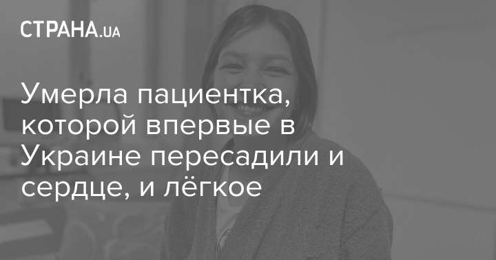Умерла жительница Киевской области 38-летняя Нина, которой сделали первую в истории Украины операцию по пересадке сердца и легких одновременно.