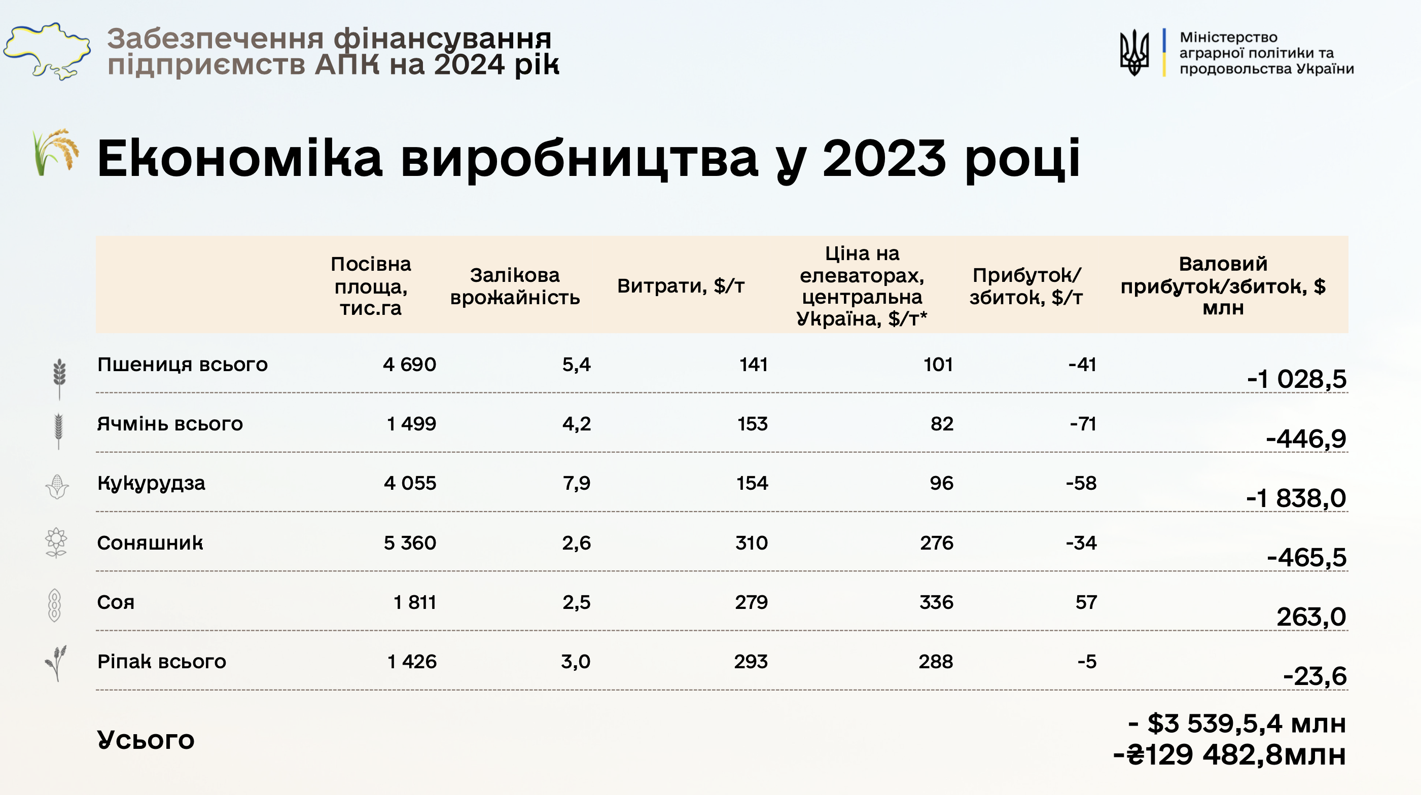 Но если брать урожай-2023 в целом, результат просто катастрофический - убытков больше чем на 3,5 млрд долларов.