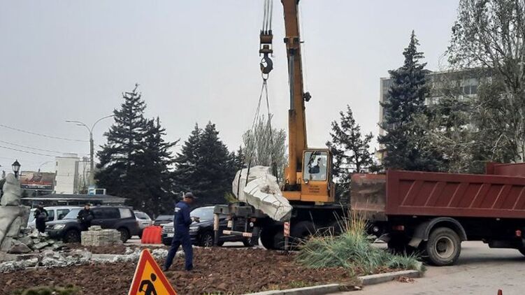 Демонтаж памятника Пушкину в Запорожье. Скриншот