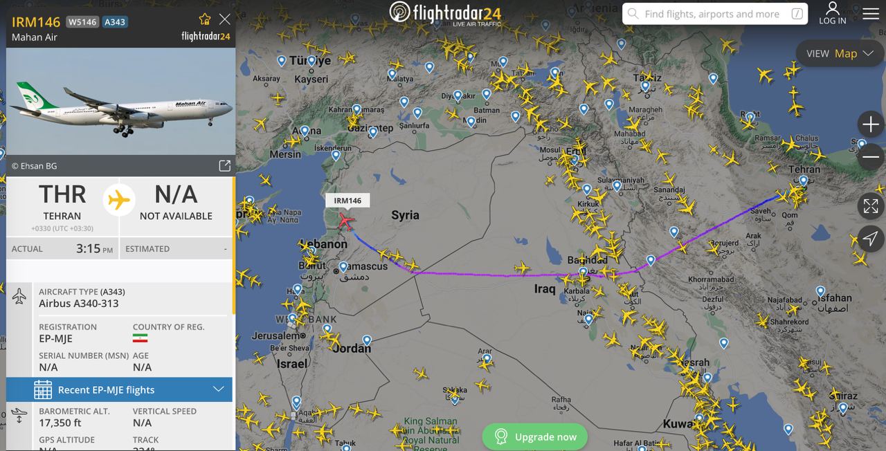 16:14 Иранский самолет приземлился на российской авиабазе Хамир в сирийской Латакии, свидетельствуют данные FlightRadar.