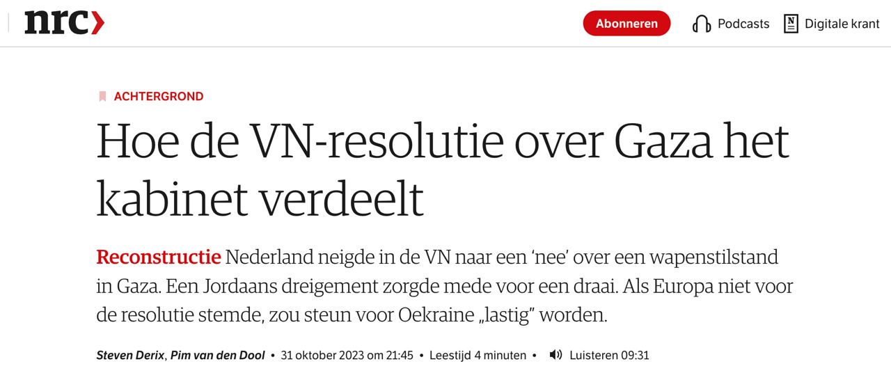 Изначально Нидерланды планировали голосовать против резолюции с призывом к немедленному перемирию в зоне палестино-израильского конфликта, но решили воздержаться.