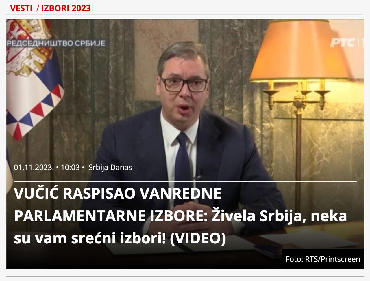 Президент Сербии Александр Вучич объявил о роспуске парламента и назначении досрочных выборов на 17 декабря.