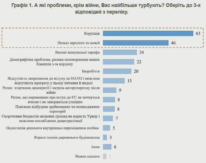 Главной проблемой в стране кроме войны украинцы считают коррупцию - опрос