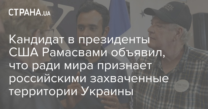 Кандидат в президенты США Рамасвами объявил, что ради мира признает российскими захваченные территории Украины